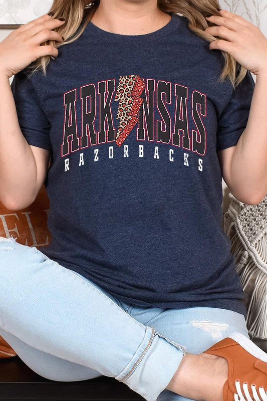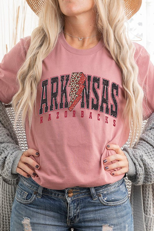 Arkansas Razorback graphic tee in unisex sizing. 100% Cotton
