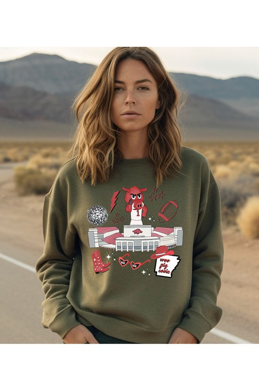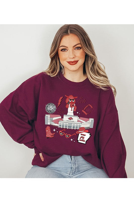 Arkansas Razorbacks Football Fleece Sweatshirt.  50% Cotton, 50% Polyester
