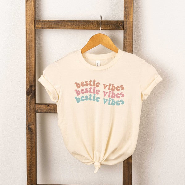 Bestie Vibes Wavy Youth Short Sleeve Graphic Tee