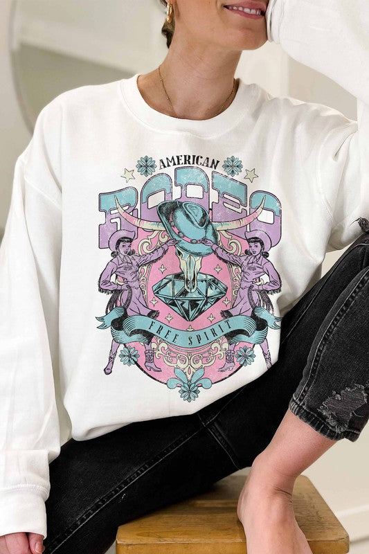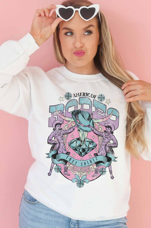 Free Spirit American Rodeo graphic crew sweatshirt. Designed for comfort and style in premium cotton and classic fit.