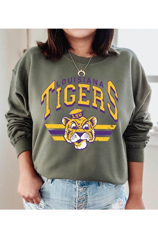 LSU Tigers Retro Sweatshirt in unisex fleece.