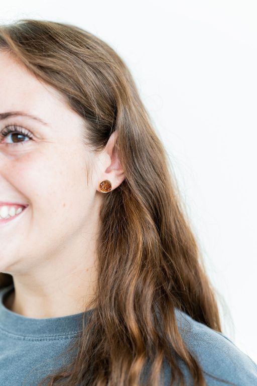 These sparkle leopard studs are the perfect subtle touch of animal print. Hypoallergenic stainless-steel posts 18k gold-plated 10mm
