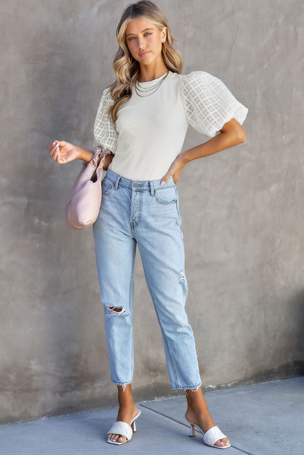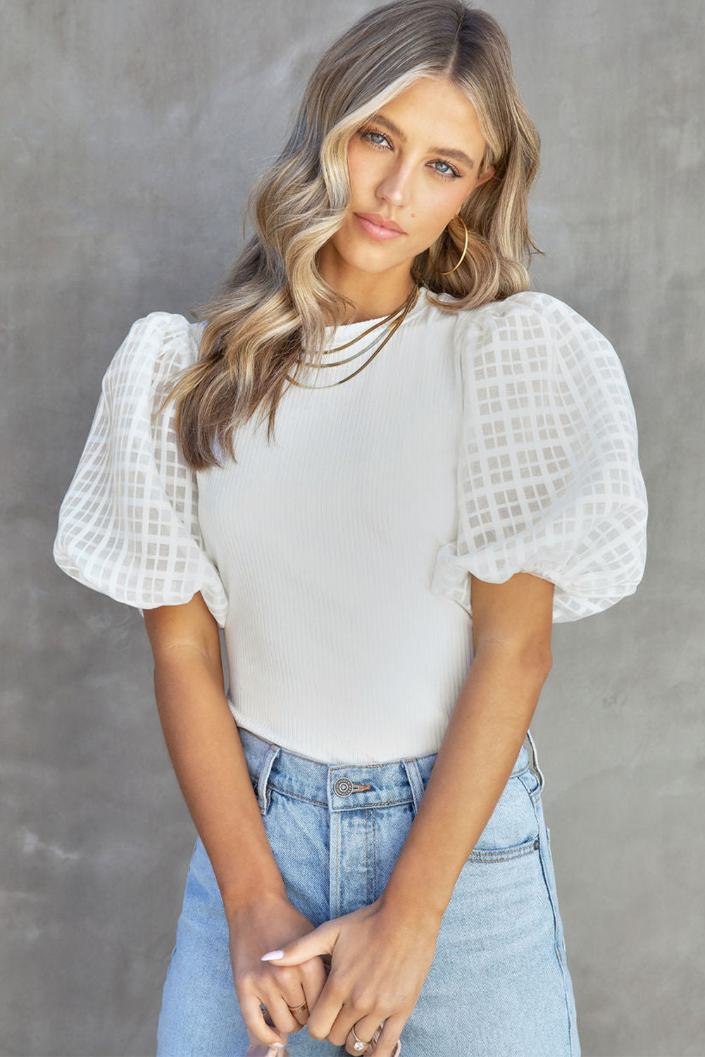 - The ribbed knit fabric makes this puff top very elastic and comfy